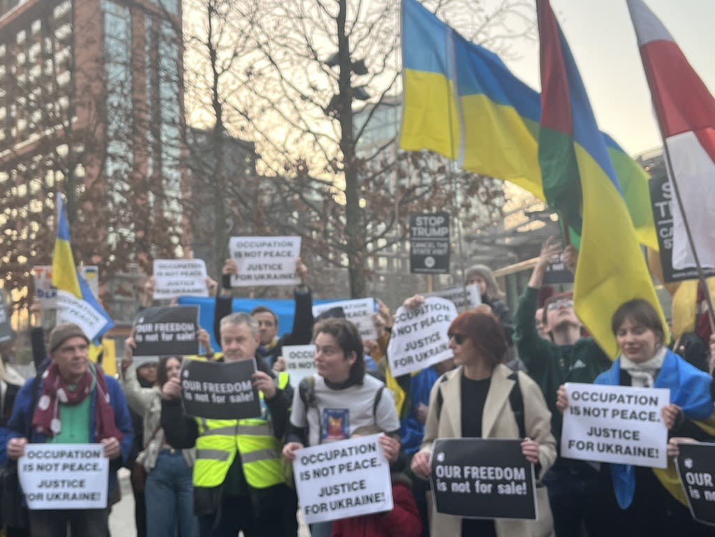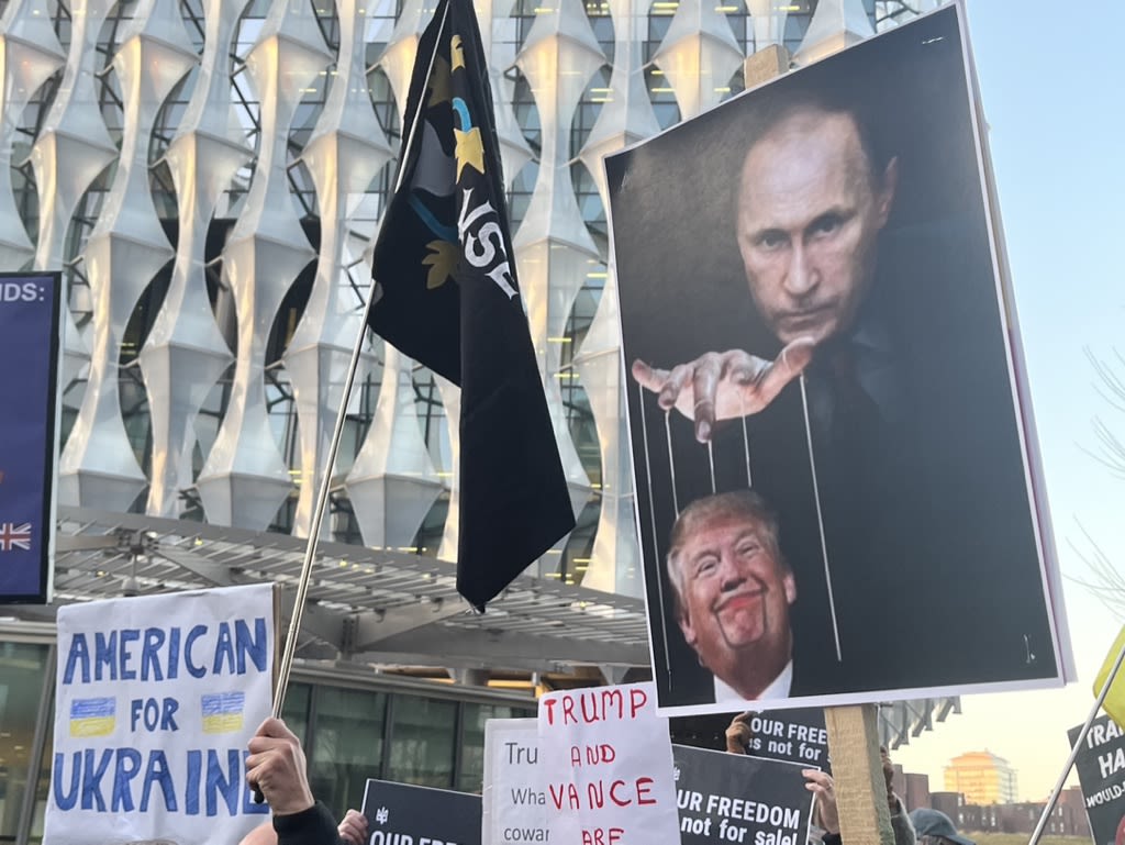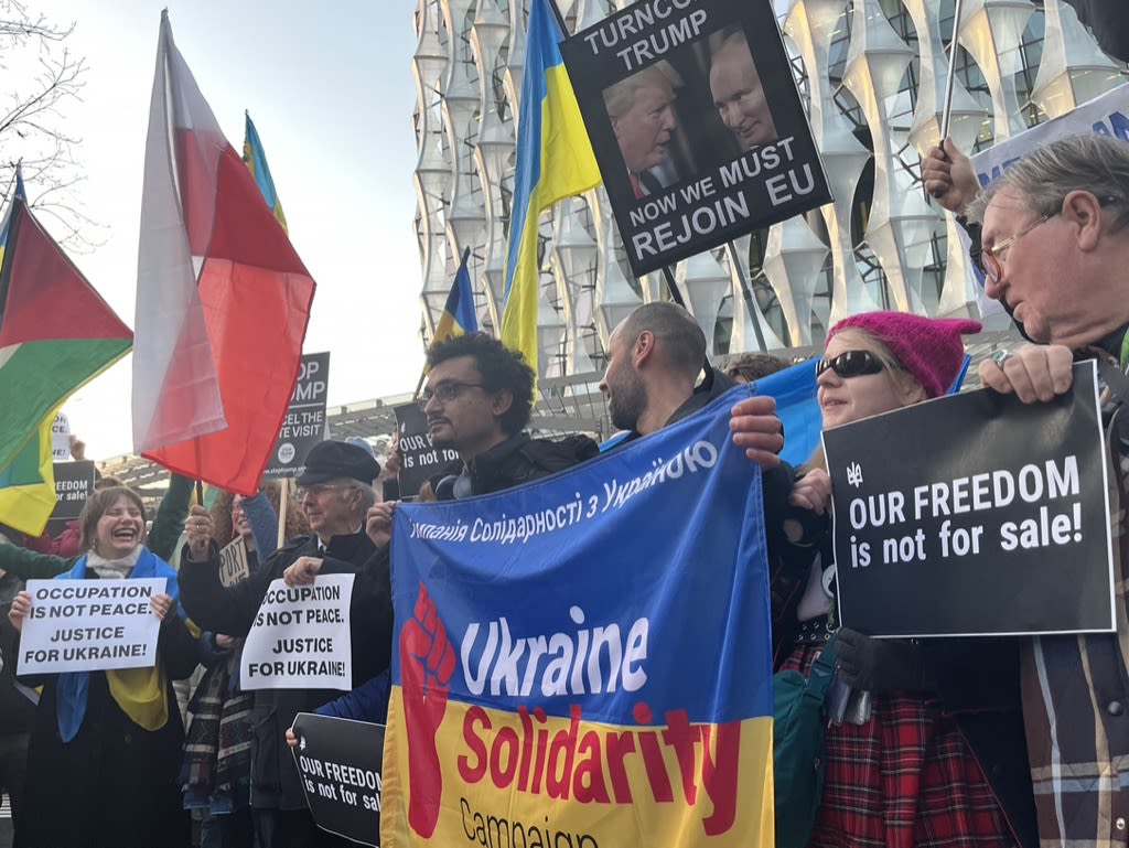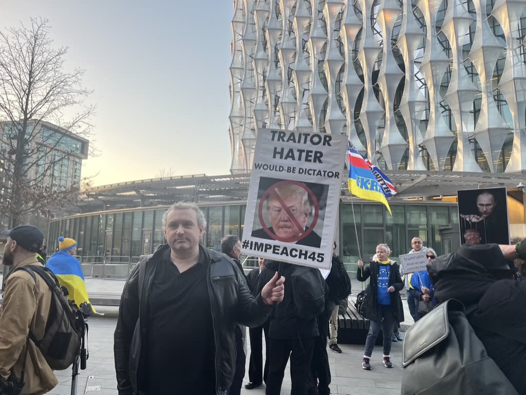 An emergency demonstration was called on March 5, bringing hundreds to the US Embassy in London to denounce Trump, Putin and the war in Ukraine.