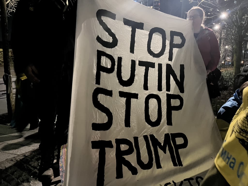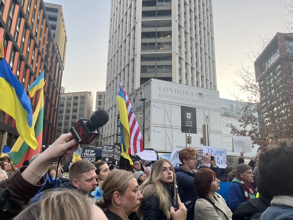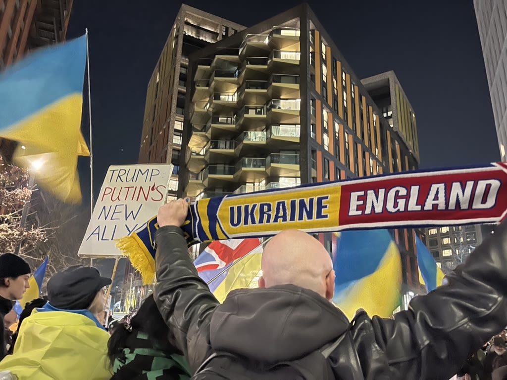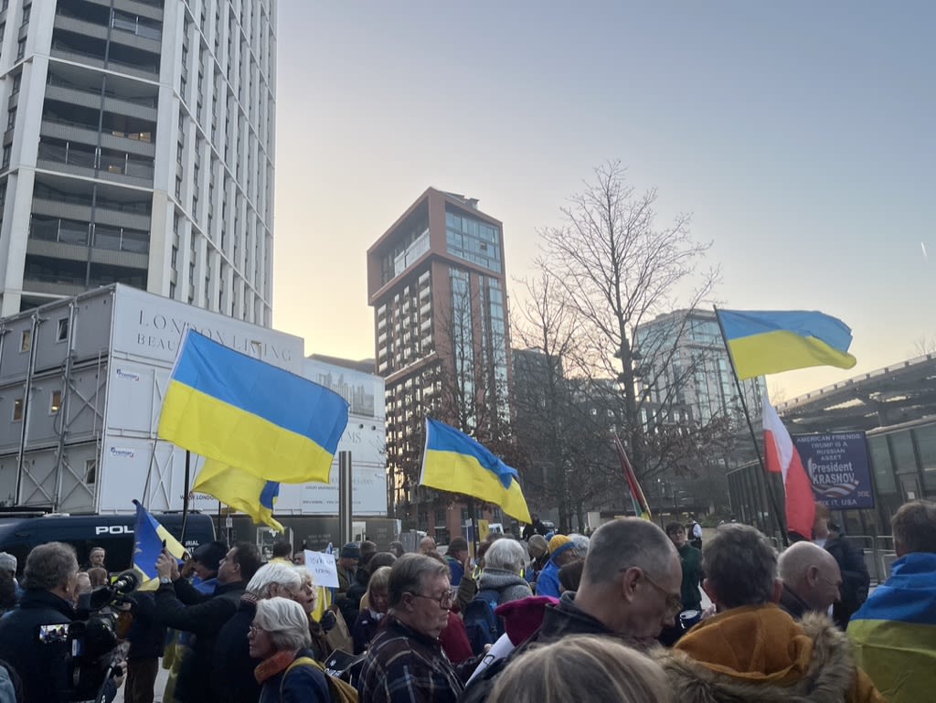 An emergency demonstration was called on March 5, bringing hundreds to the US Embassy in London to denounce Trump, Putin and the war in Ukraine.