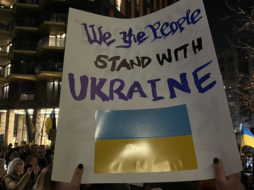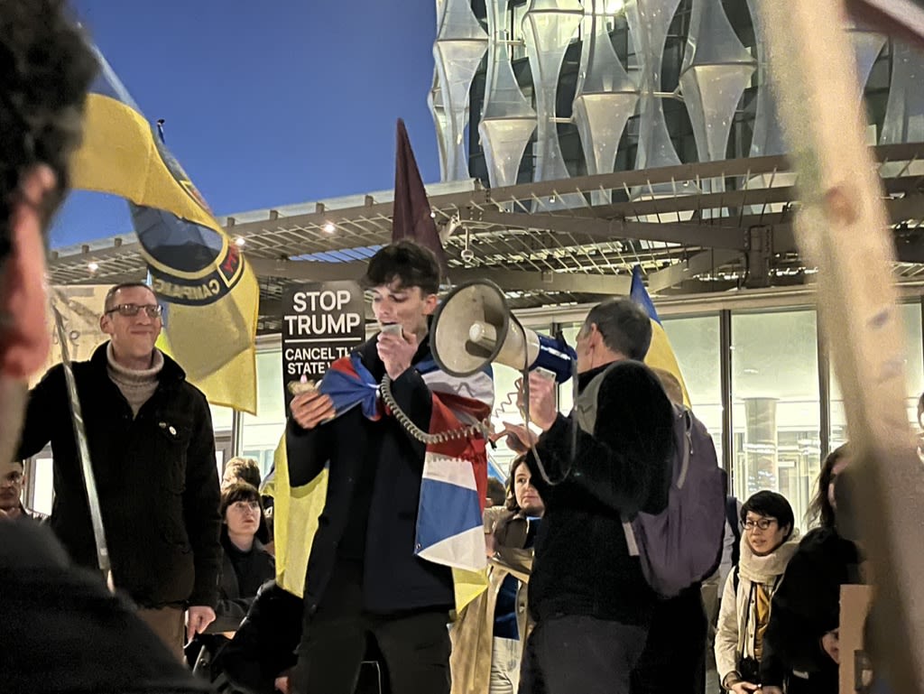 Protestors travelled from across the country to show their disapproval of American foreign policy, just days after the Trump Administration paused aid to Ukraine.